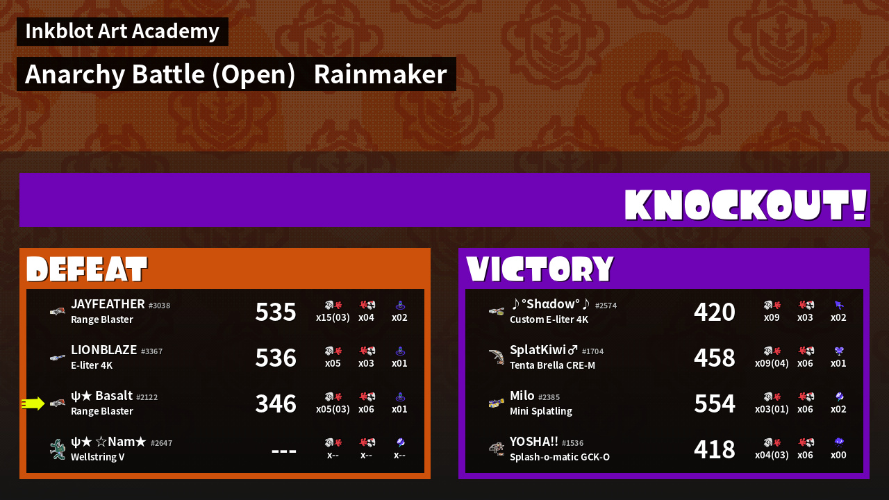 | Mode | Rainmaker - Anarchy Battle (Open) | ||