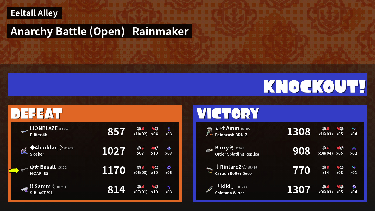 | Mode | Rainmaker - Anarchy Battle (Open) | ||