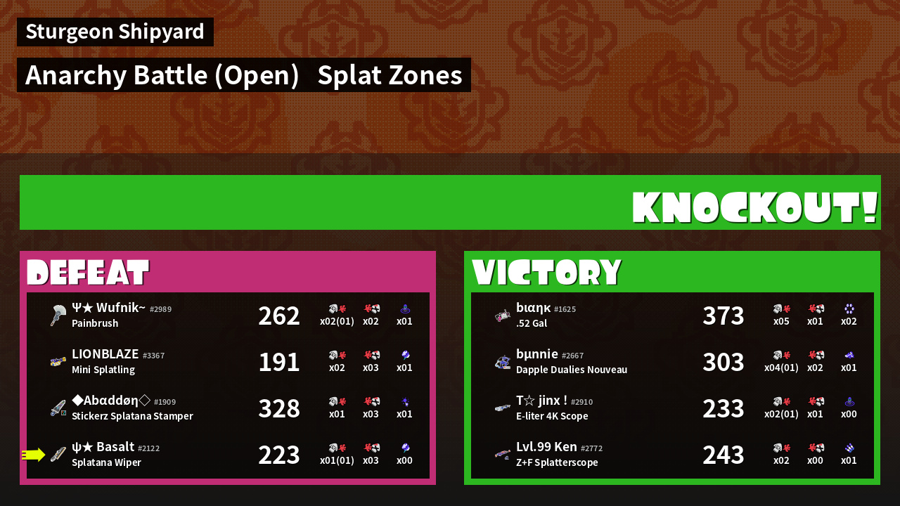 | Mode | Splat Zones - Anarchy Battle (Open) | ||