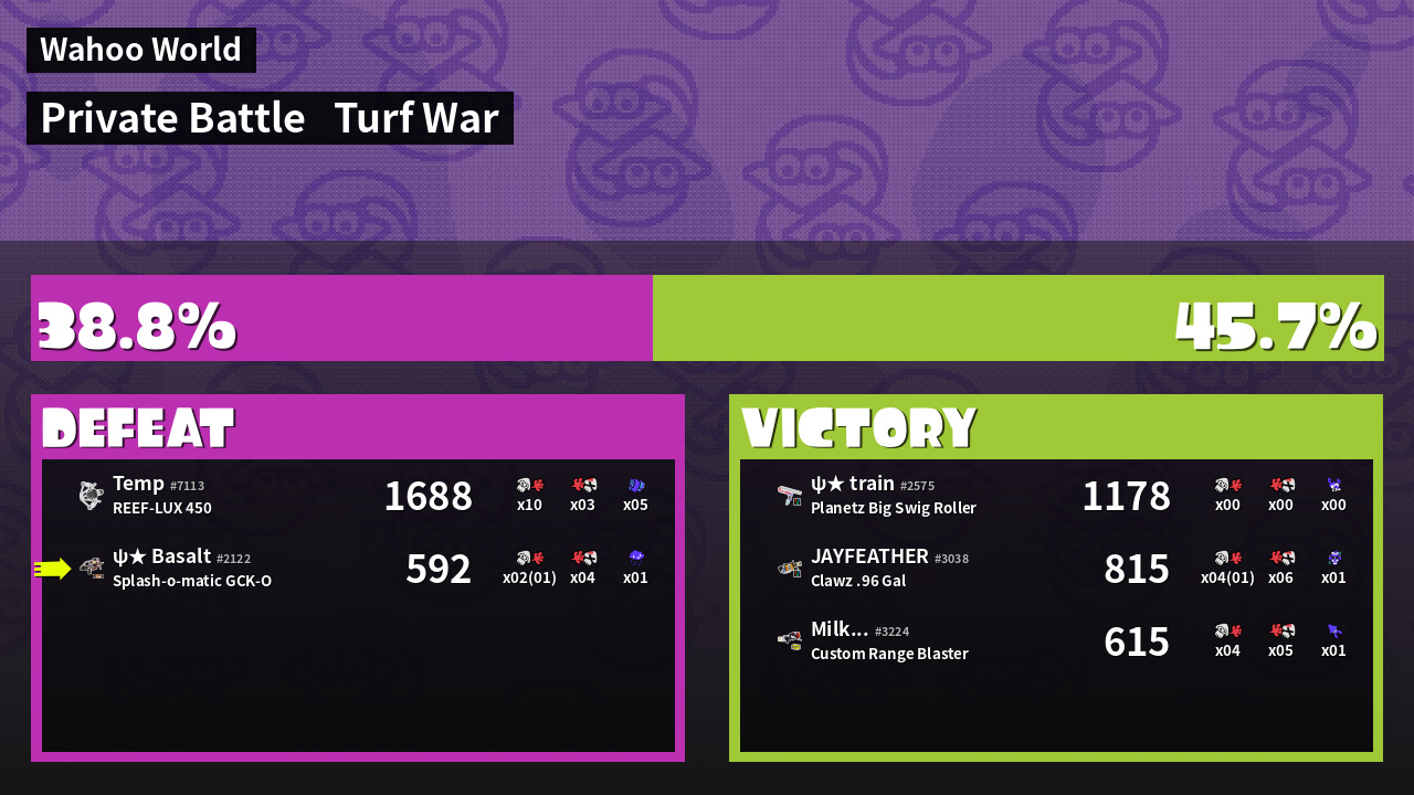 | Mode | Turf War - Private Battle | ||