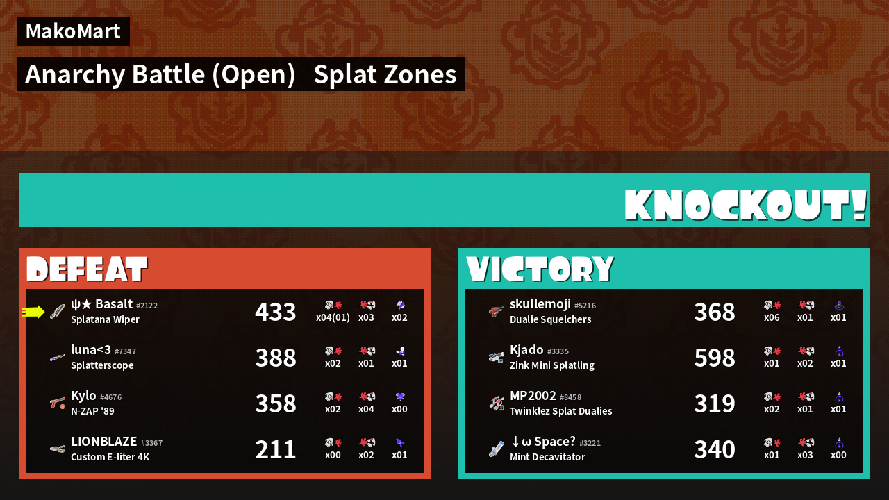| Mode | Splat Zones - Anarchy Battle (Open) | ||