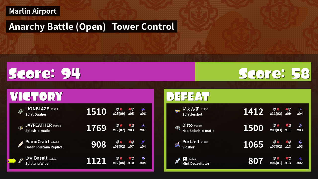 | Mode | Tower Control - Anarchy Battle (Open) | ||