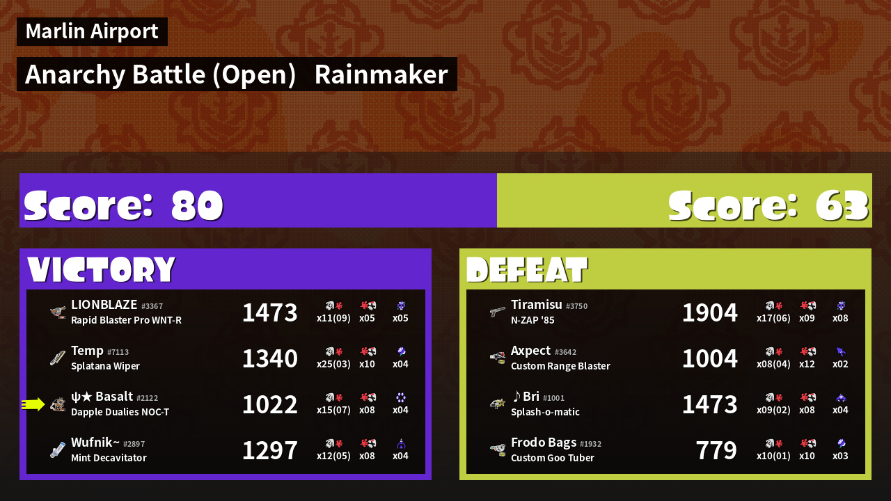 | Mode | Rainmaker - Anarchy Battle (Open) | ||