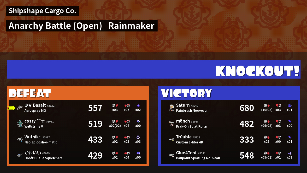 | Mode | Rainmaker - Anarchy Battle (Open) | ||