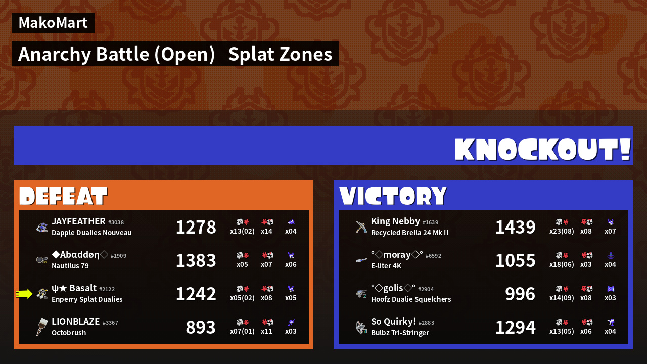 | Mode | Splat Zones - Anarchy Battle (Open) | ||