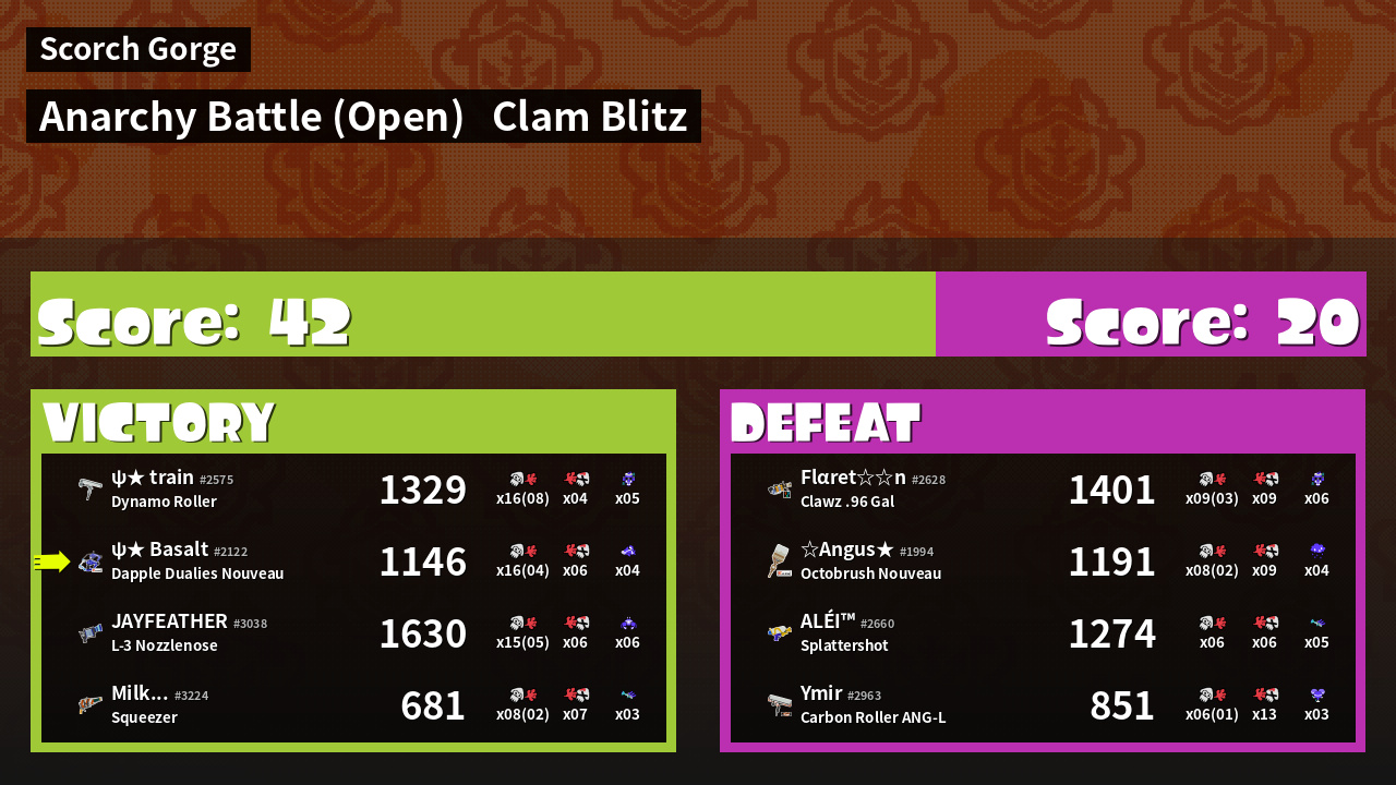 | Mode | Clam Blitz - Anarchy Battle (Open) | ||