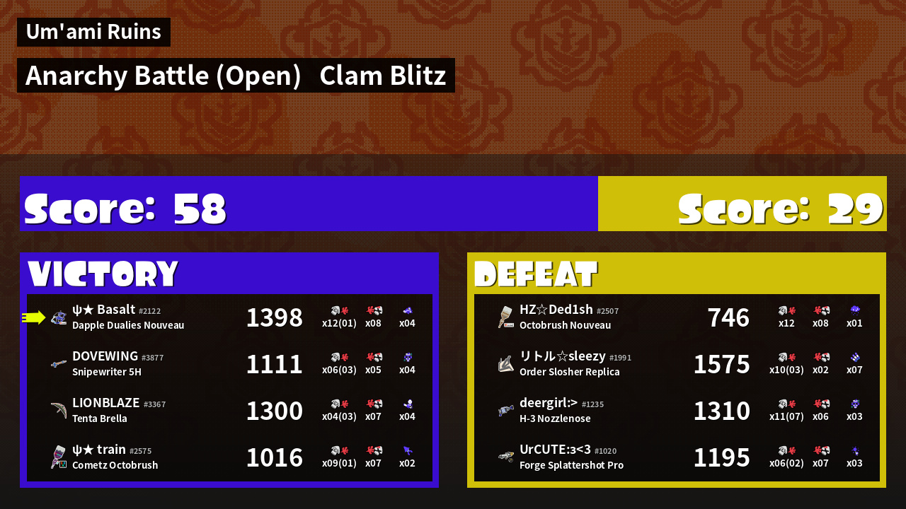 | Mode | Clam Blitz - Anarchy Battle (Open) | ||