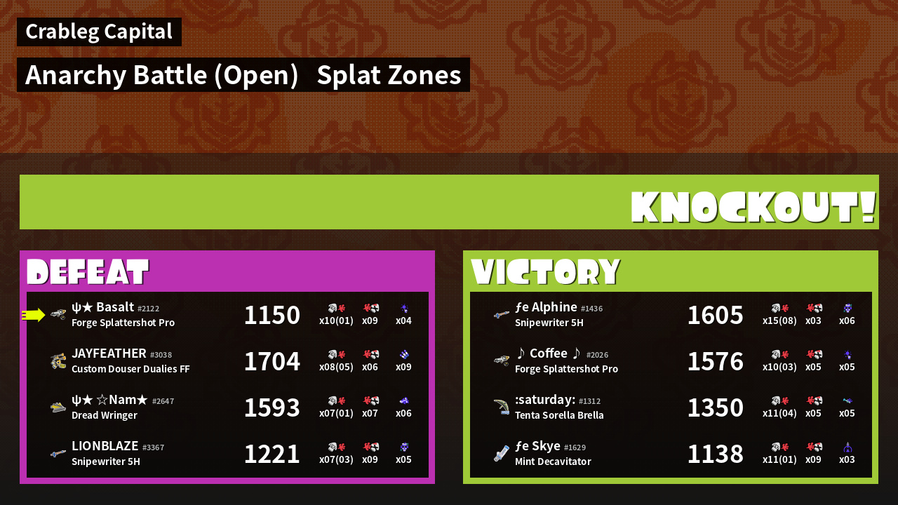 | Mode | Splat Zones - Anarchy Battle (Open) | ||