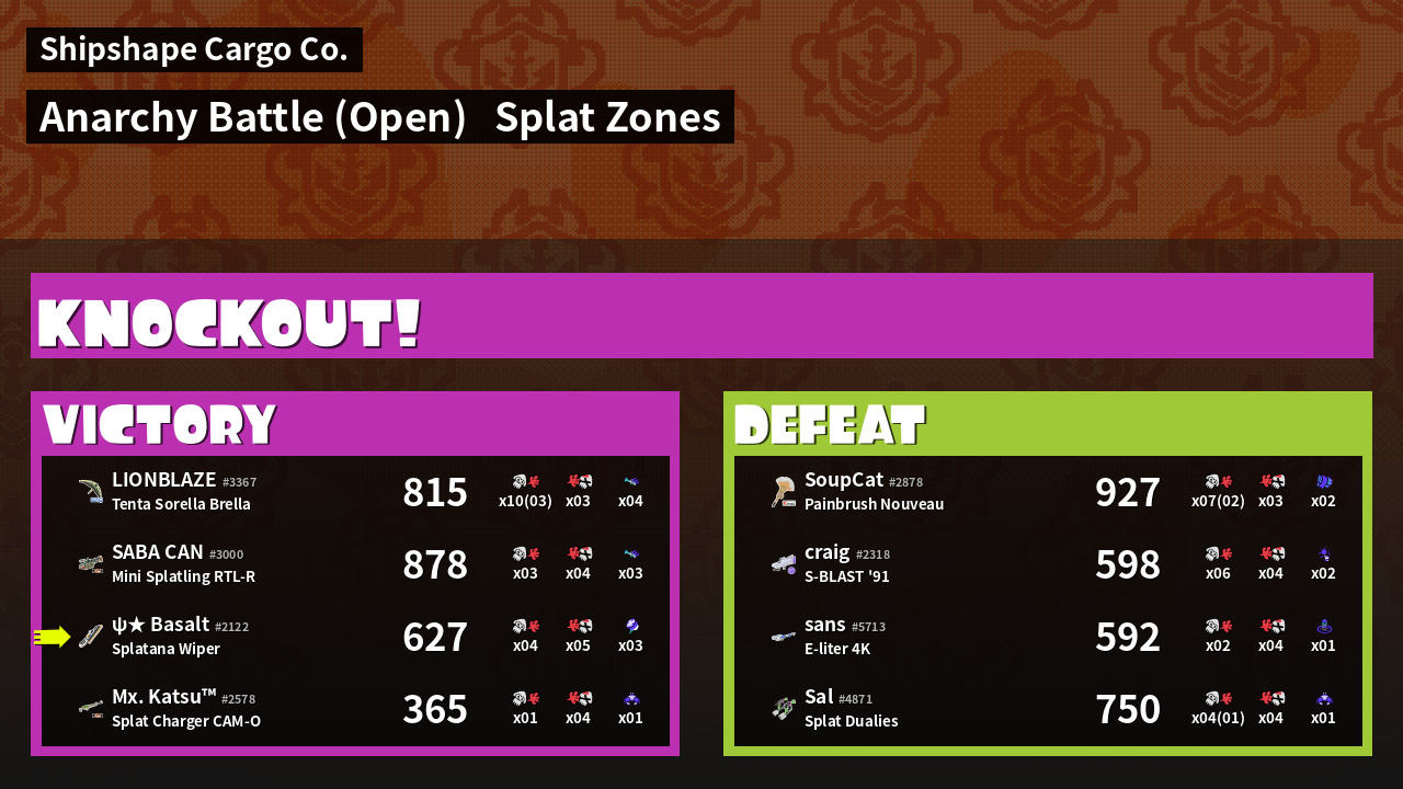 | Mode | Splat Zones - Anarchy Battle (Open) | ||