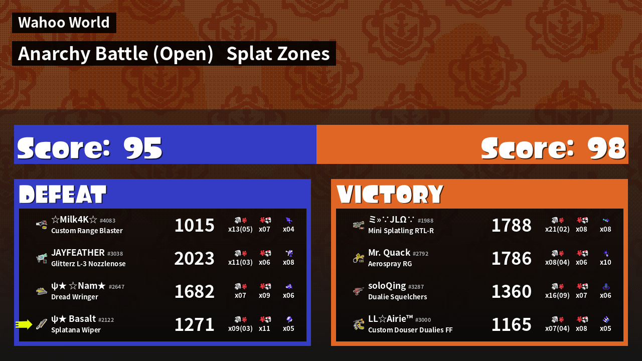 | Mode | Splat Zones - Anarchy Battle (Open) | ||