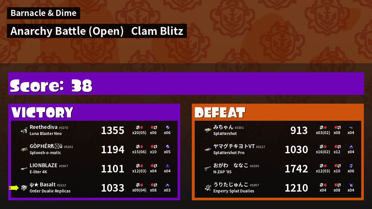 | Mode | Clam Blitz - Anarchy Battle (Open) | ||