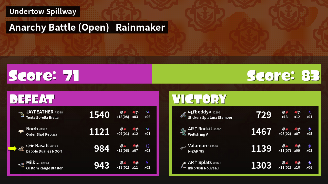 | Mode | Rainmaker - Anarchy Battle (Open) | ||