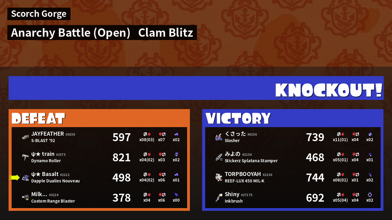 | Mode | Clam Blitz - Anarchy Battle (Open) | ||