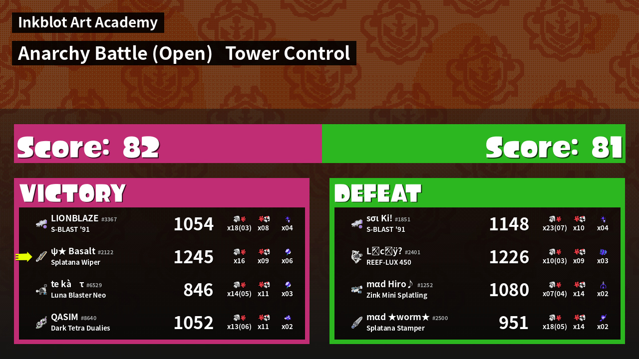 | Mode | Tower Control - Anarchy Battle (Open) | ||