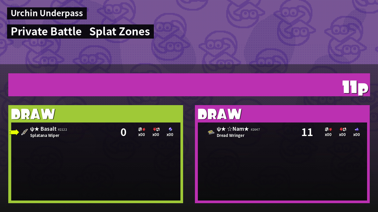 | Mode | Splat Zones - Private Battle | ||