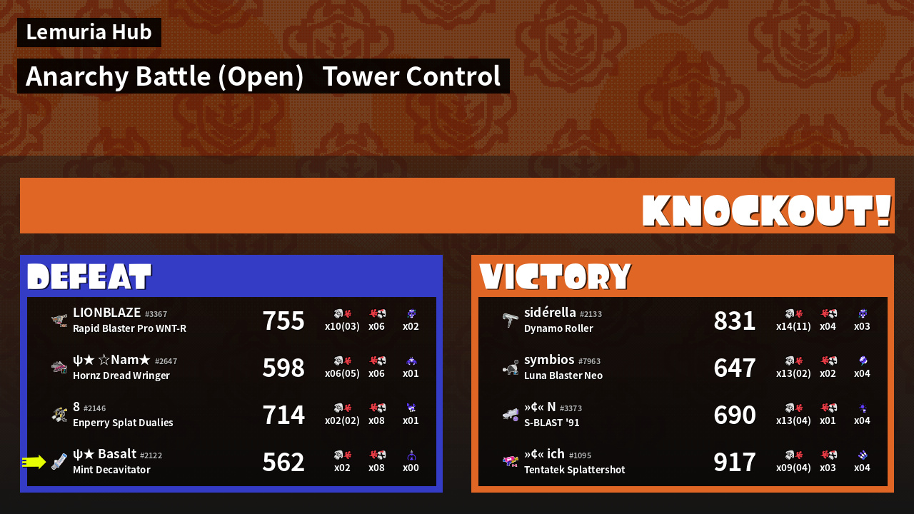 | Mode | Tower Control - Anarchy Battle (Open) | ||