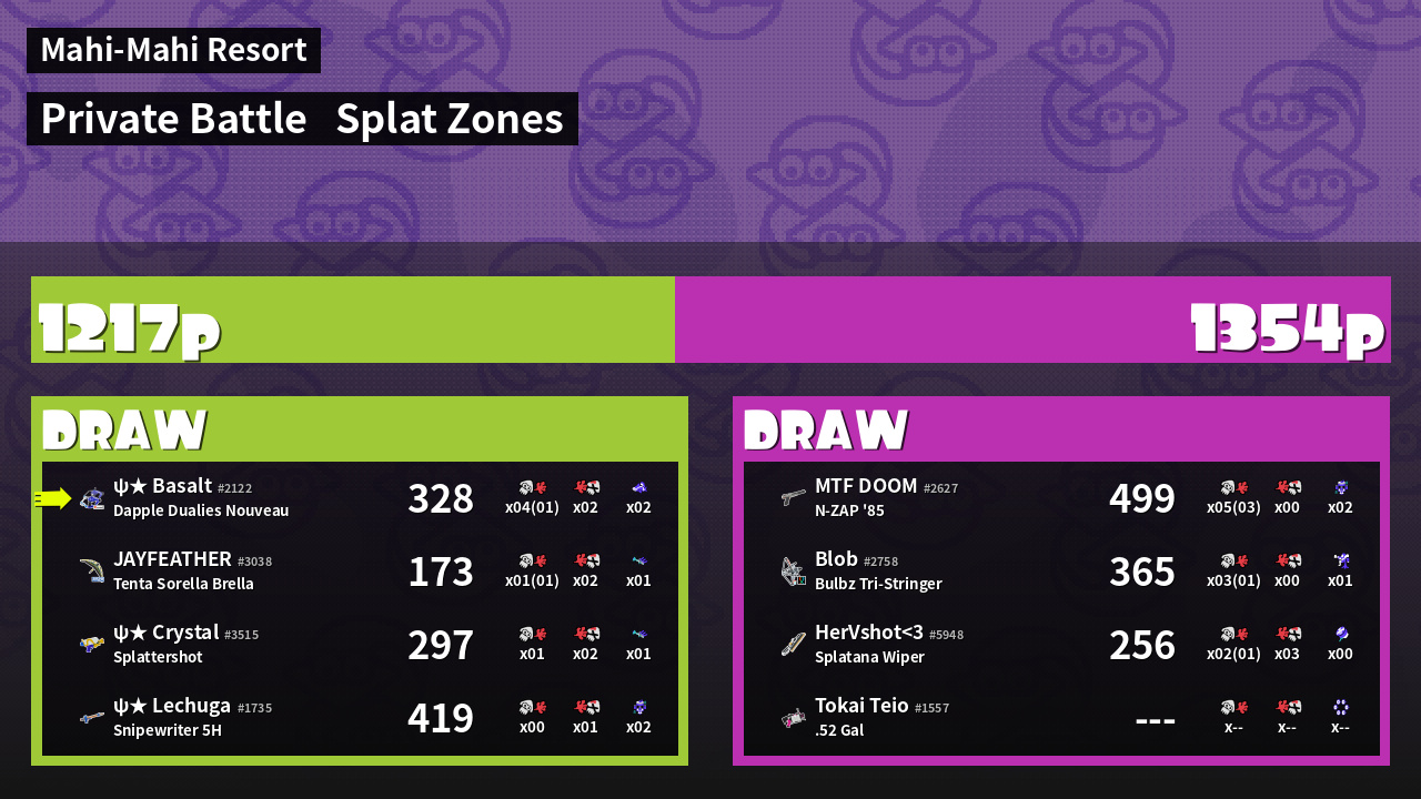 | Mode | Splat Zones - Private Battle | ||