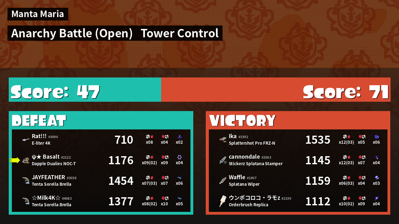 | Mode | Tower Control - Anarchy Battle (Open) | ||