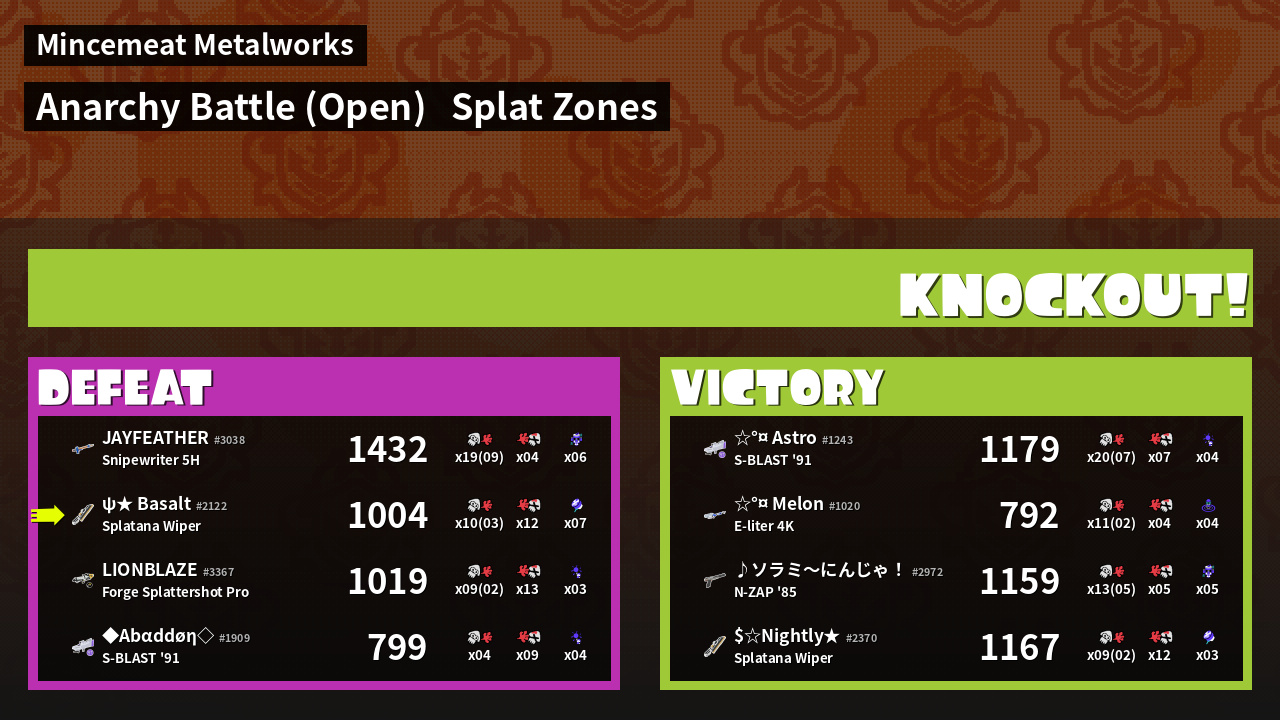 | Mode | Splat Zones - Anarchy Battle (Open) | ||