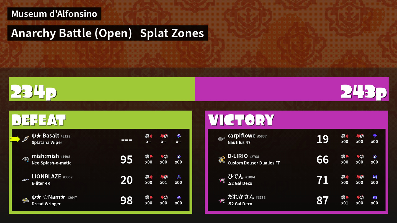 | Mode | Splat Zones - Anarchy Battle (Open) | ||