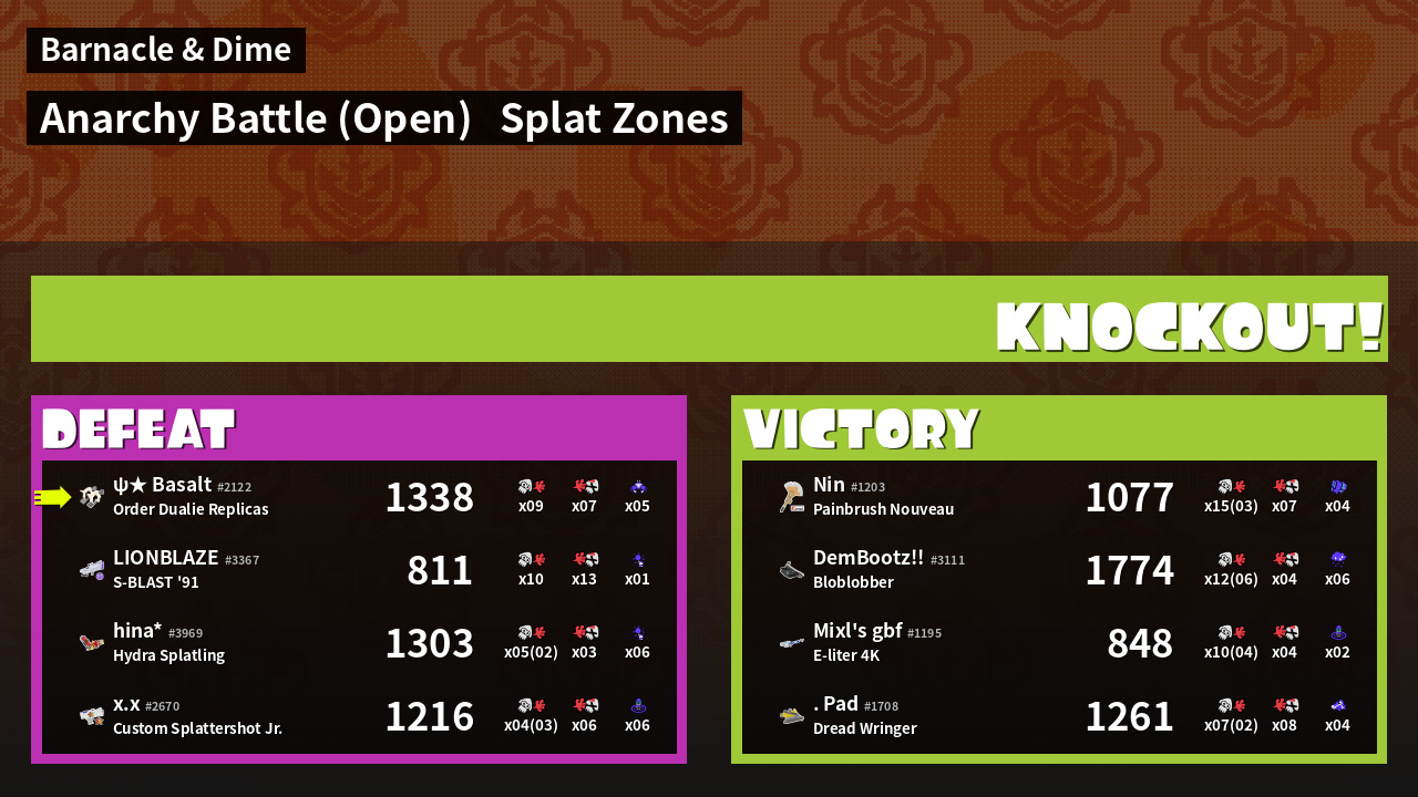 | Mode | Splat Zones - Anarchy Battle (Open) | ||