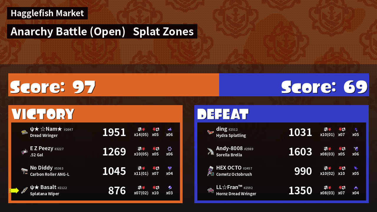 | Mode | Splat Zones - Anarchy Battle (Open) | ||