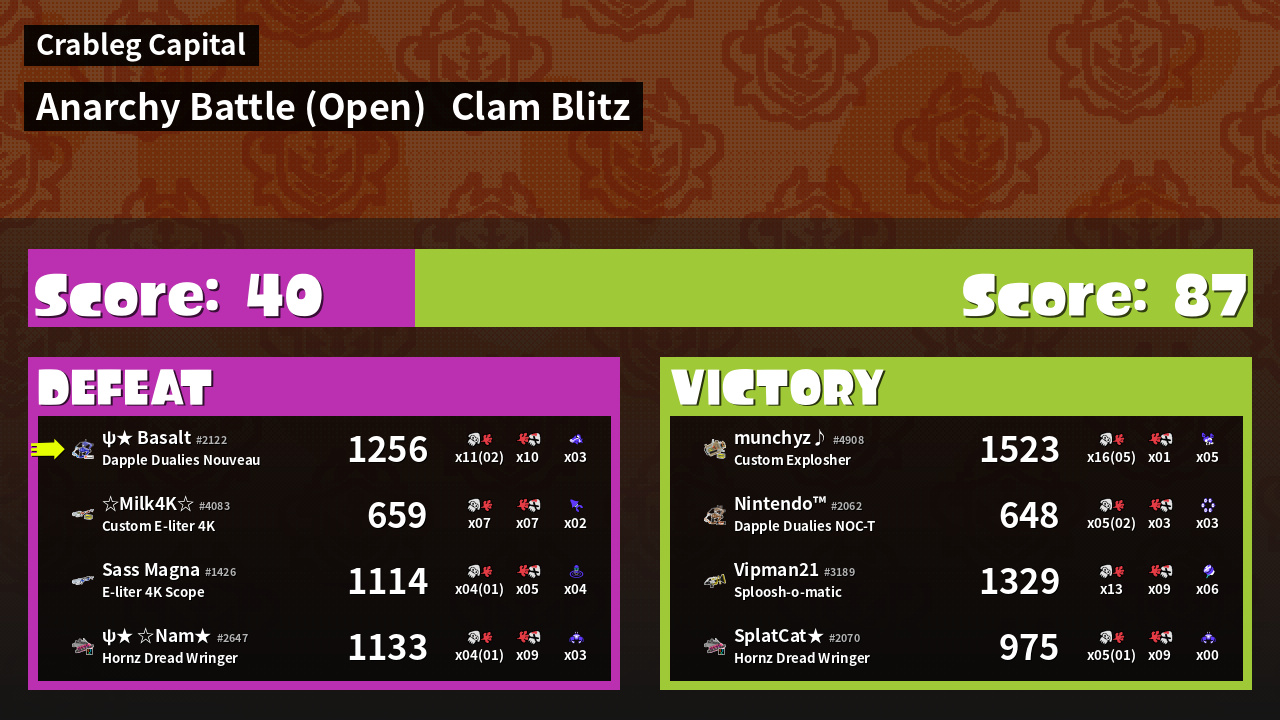 | Mode | Clam Blitz - Anarchy Battle (Open) | ||