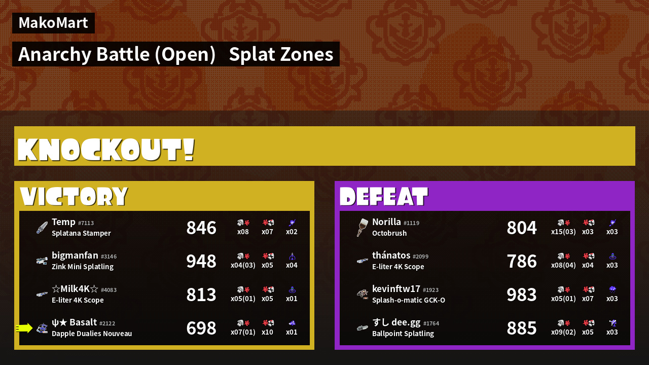 | Mode | Splat Zones - Anarchy Battle (Open) | ||