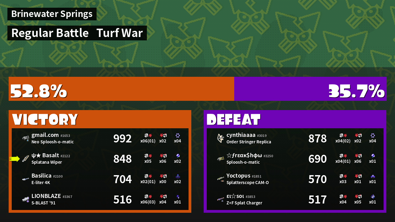 | Medals | #1 Home-Base Inker #1 Enemy Splatter First Splat! | ||