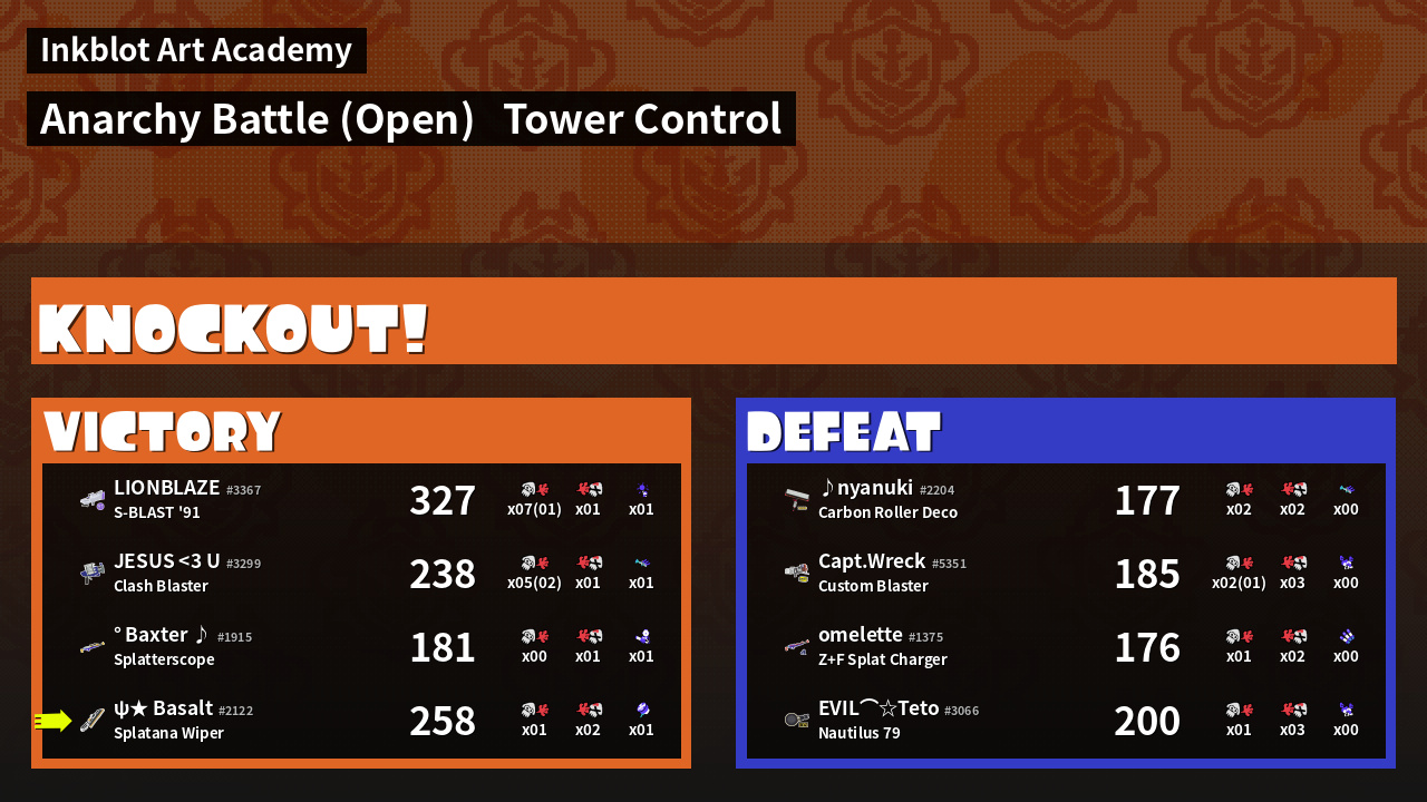 | Mode | Tower Control - Anarchy Battle (Open) | ||