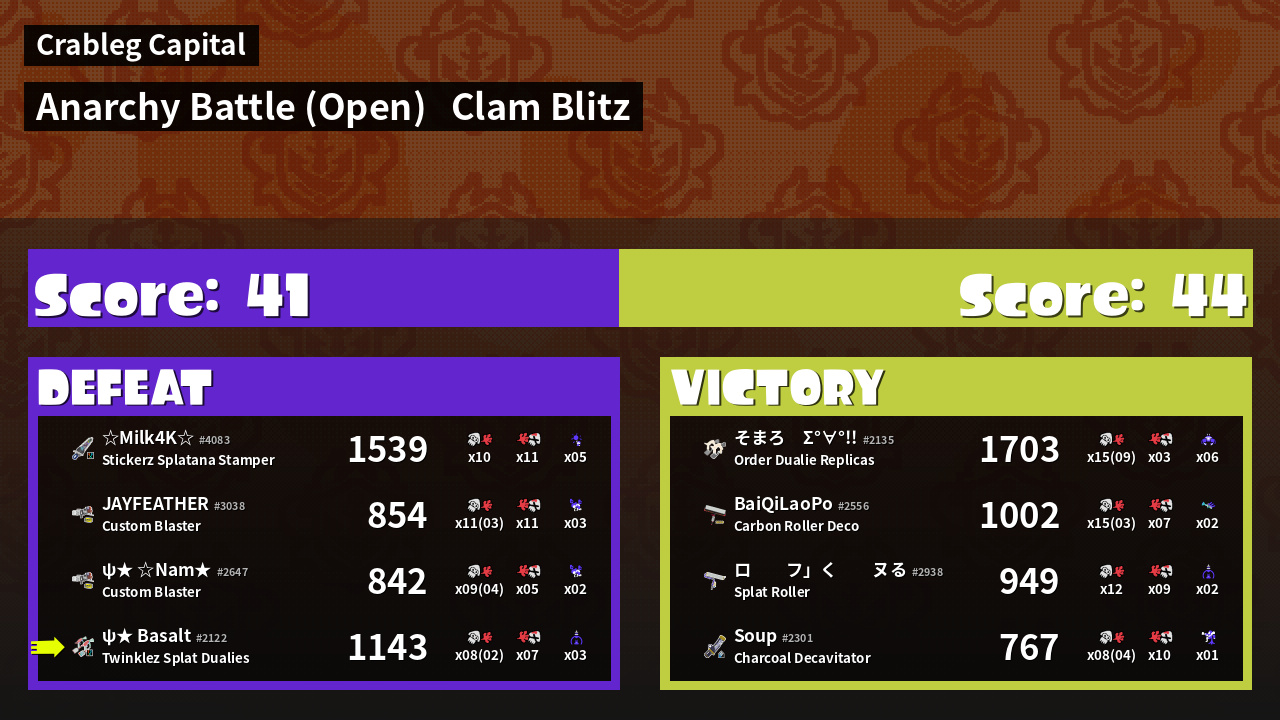 | Mode | Clam Blitz - Anarchy Battle (Open) | ||
