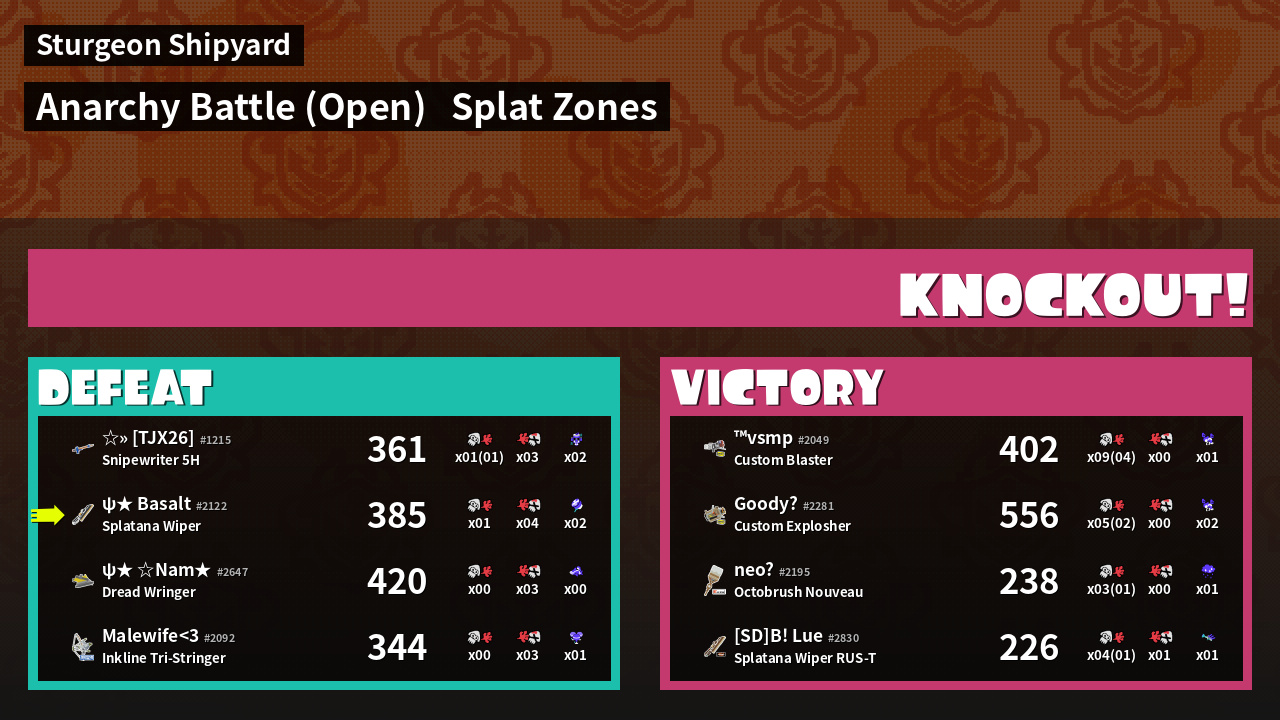 | Mode | Splat Zones - Anarchy Battle (Open) | ||