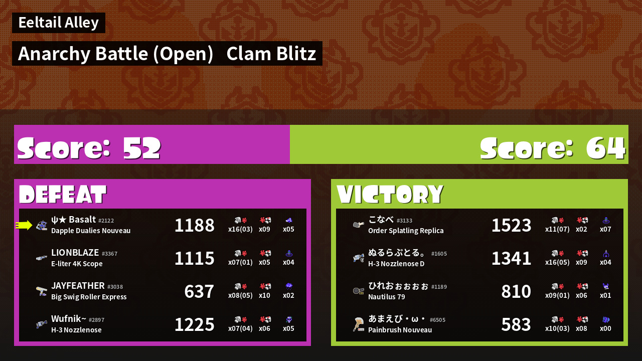 | Mode | Clam Blitz - Anarchy Battle (Open) | ||