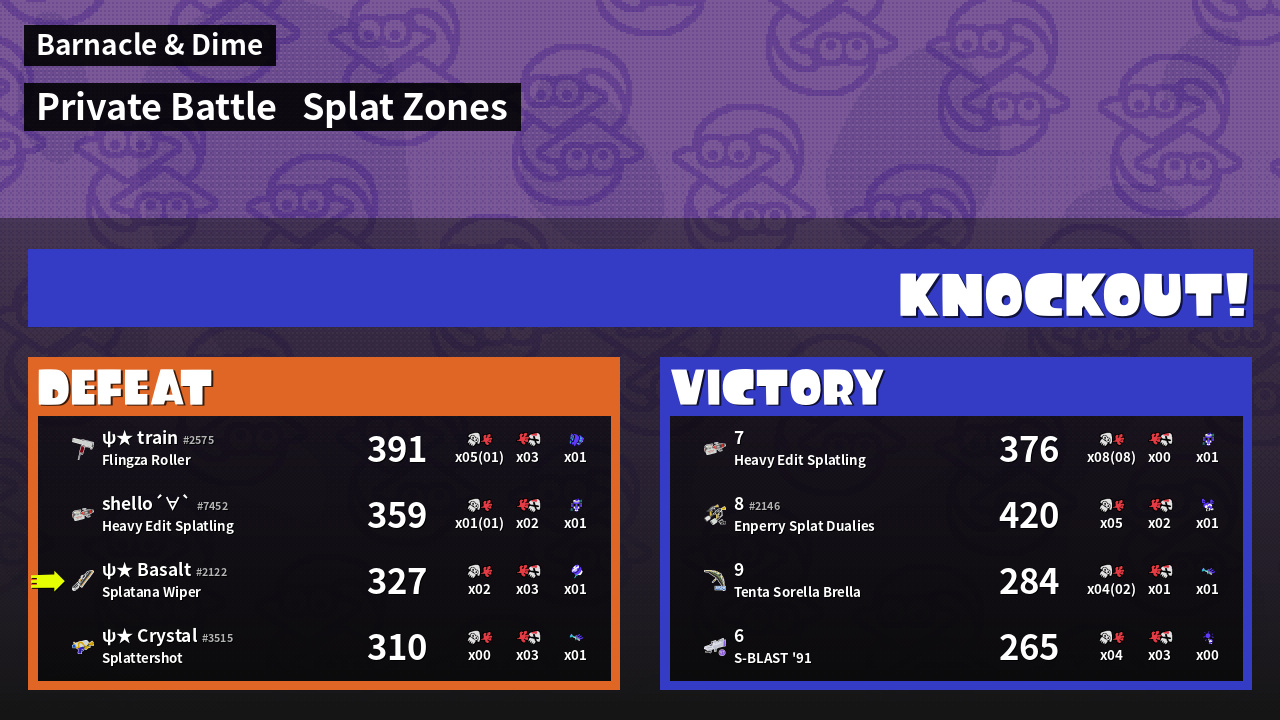 | Medals | #1 Splat Zone Inker #1 Damage Taker #1 Ink Consumer | ||