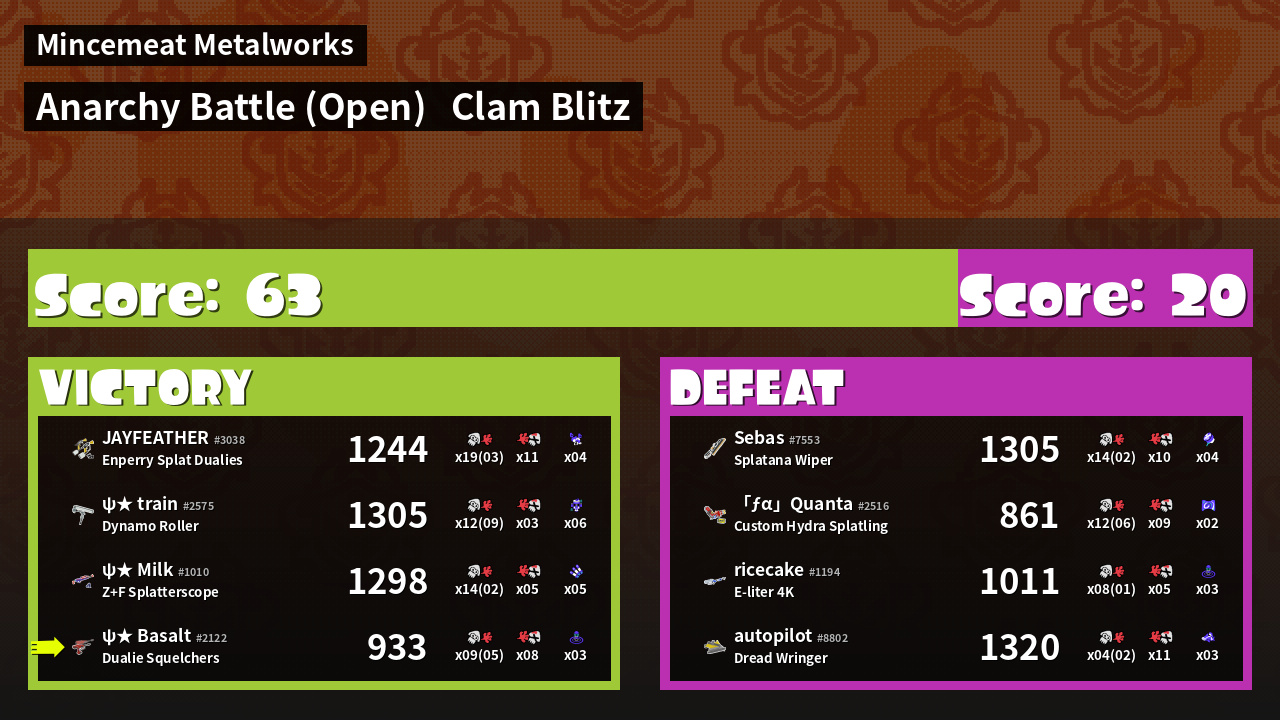 | Mode | Clam Blitz - Anarchy Battle (Open) | ||