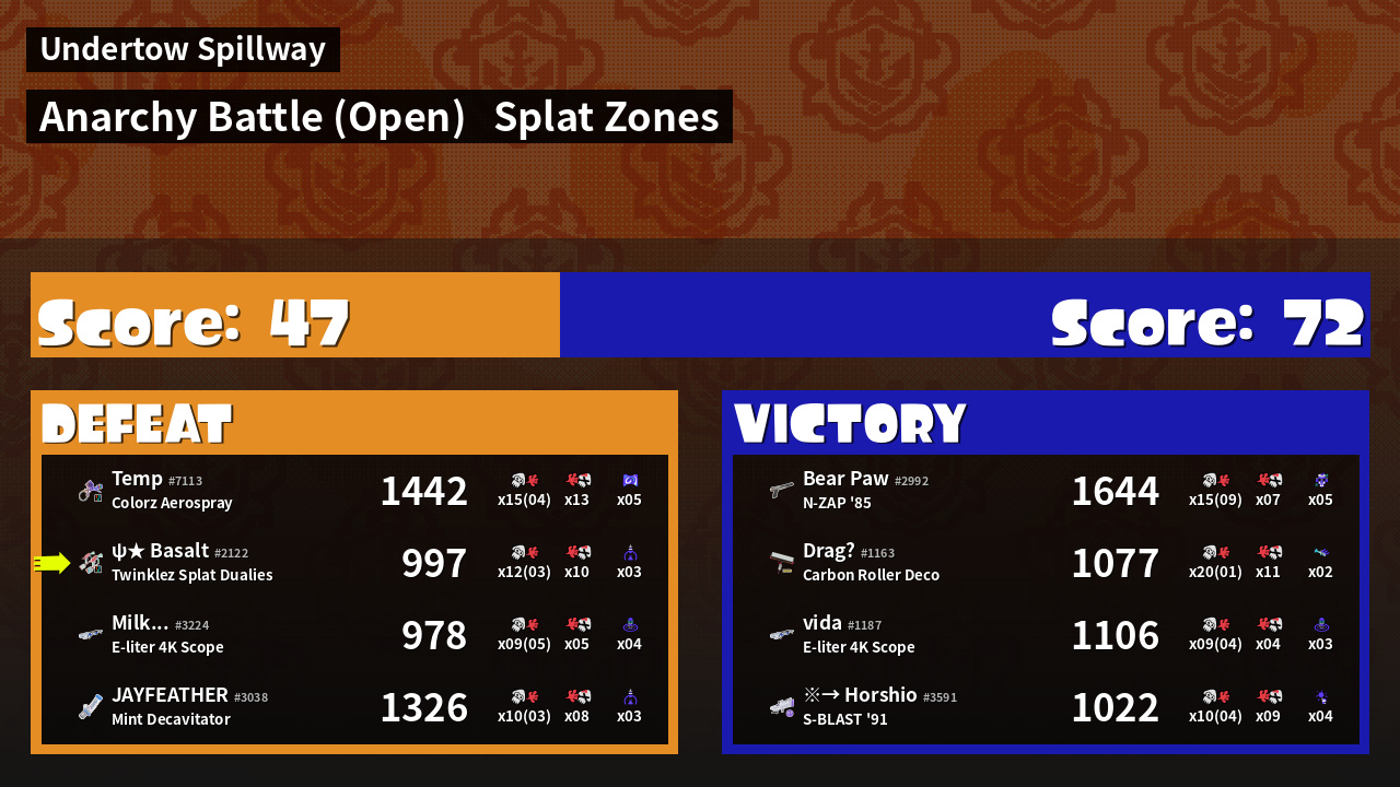 | Mode | Splat Zones - Anarchy Battle (Open) | ||