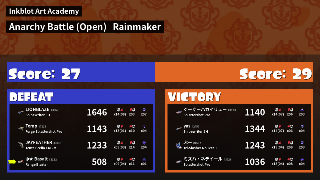 | Mode | Rainmaker - Anarchy Battle (Open) | ||
