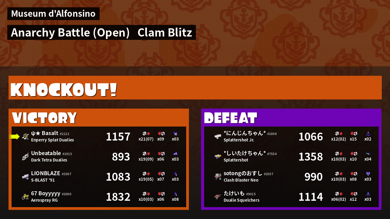 | Mode | Clam Blitz - Anarchy Battle (Open) | ||