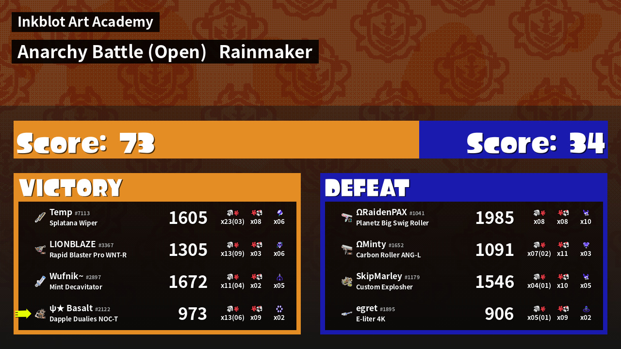 | Mode | Rainmaker - Anarchy Battle (Open) | ||