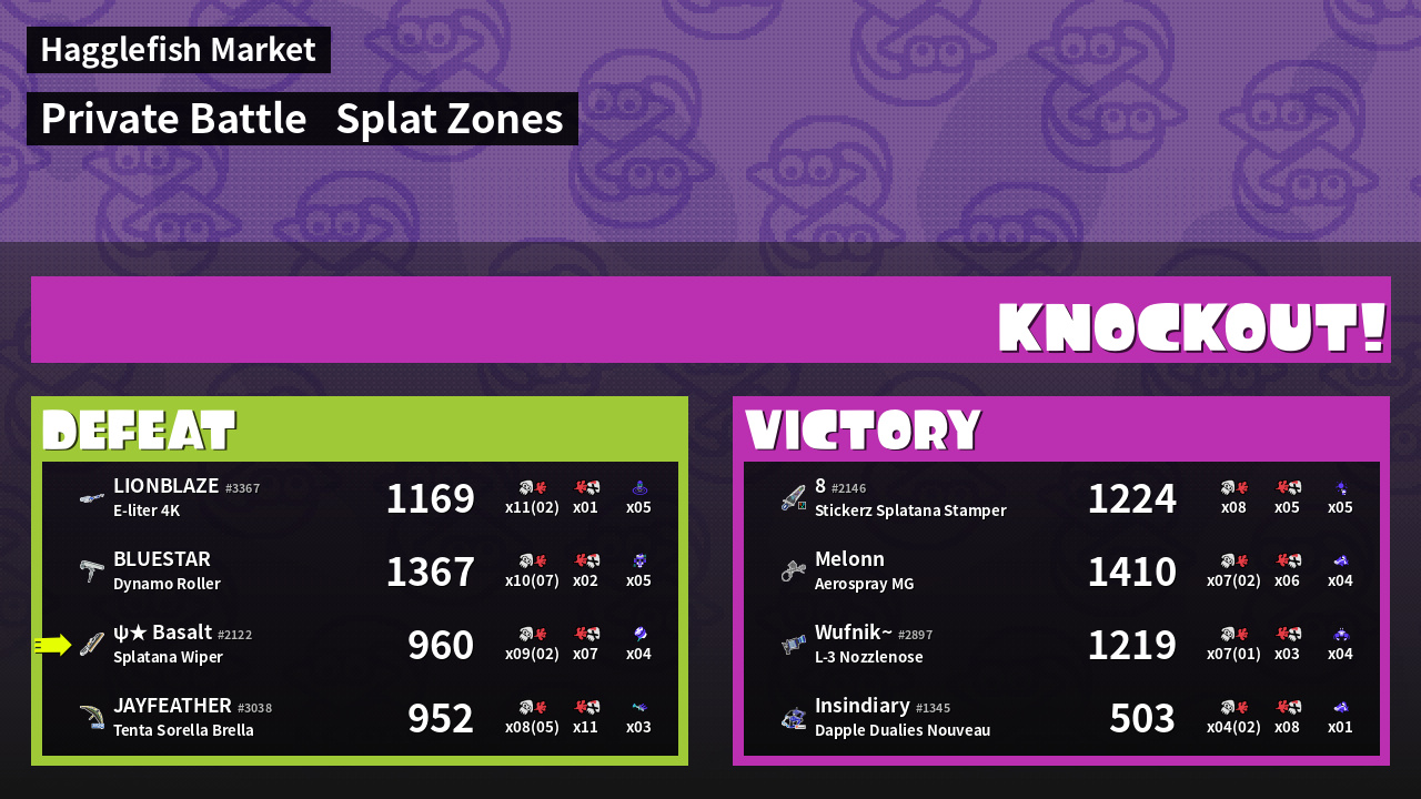| Medals | #1 Splat Zone Guard #1 Ground Traveler #1 Damage Taker | ||