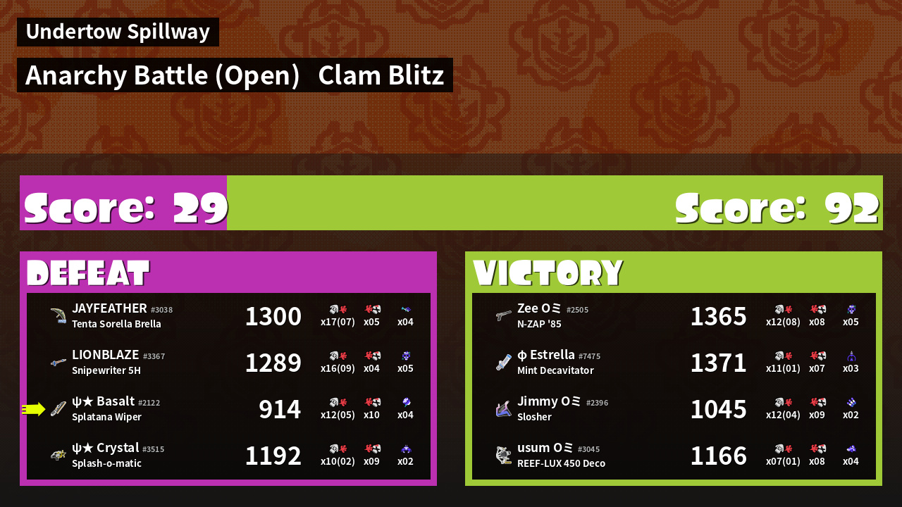 | Mode | Clam Blitz - Anarchy Battle (Open) | ||