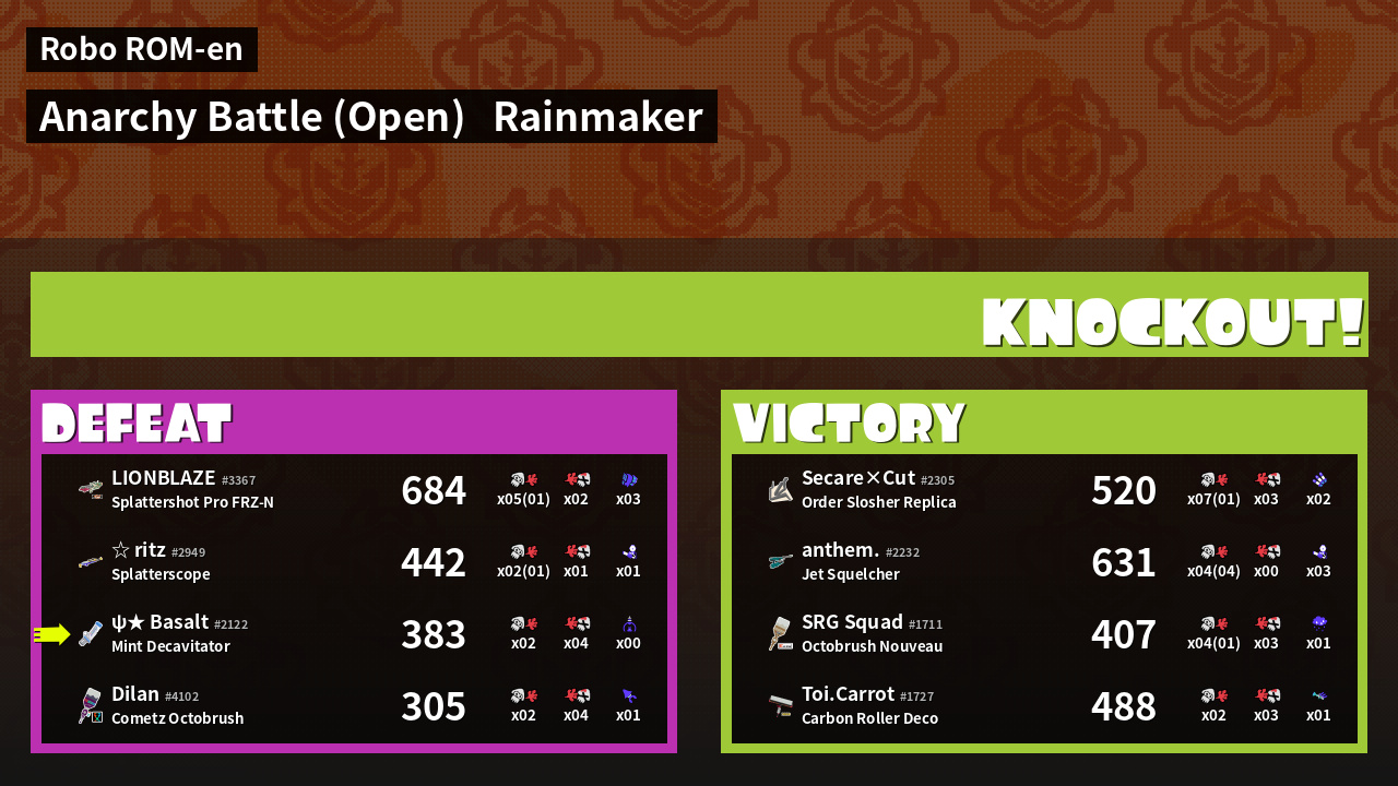 | Mode | Rainmaker - Anarchy Battle (Open) | ||