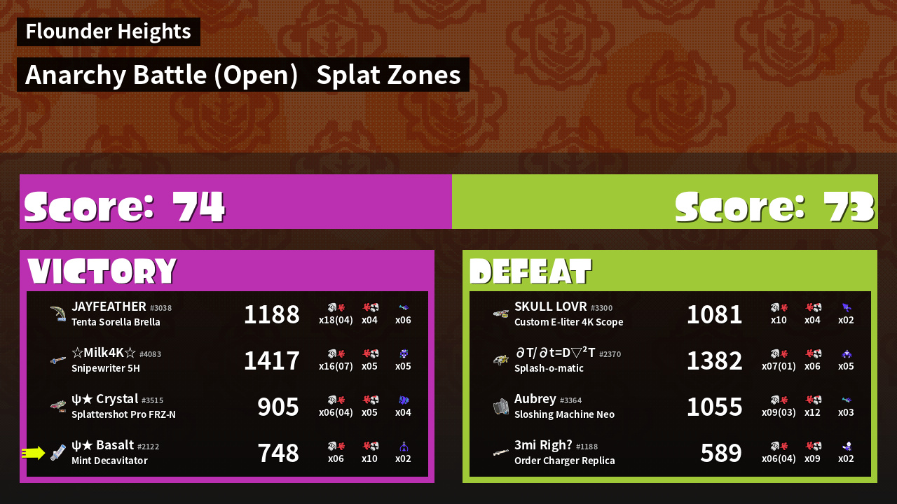 | Mode | Splat Zones - Anarchy Battle (Open) | ||
