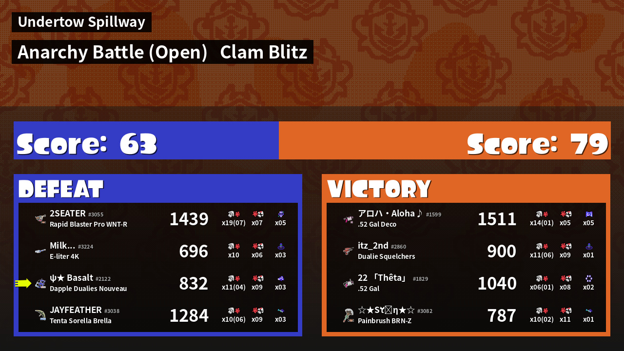 | Mode | Clam Blitz - Anarchy Battle (Open) | ||