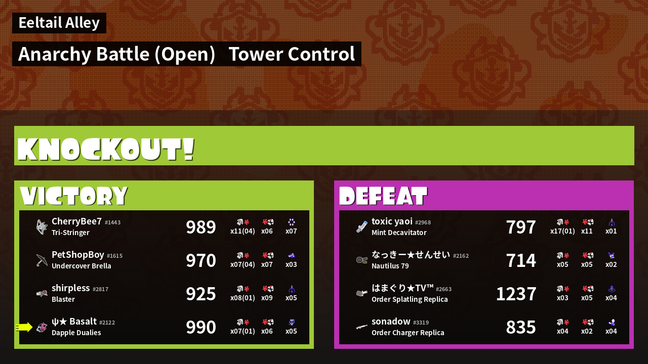 | Mode | Tower Control - Anarchy Battle (Open) | ||