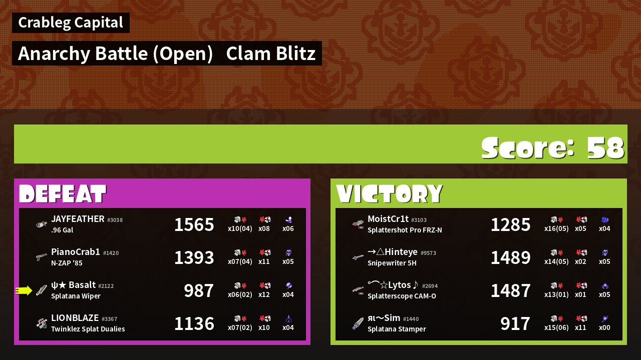 | Mode | Clam Blitz - Anarchy Battle (Open) | ||
