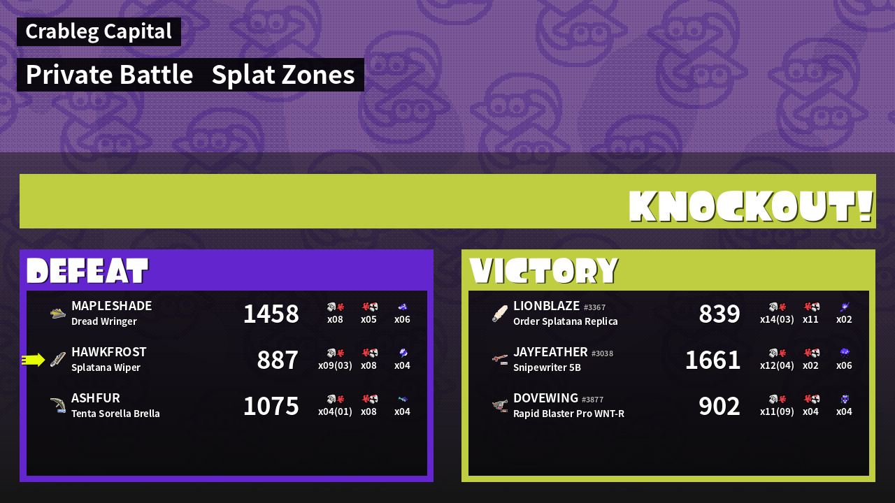 | Medals | #1 Overall Splatter #1 Splat Assister #1 Ultra Stamp User | ||