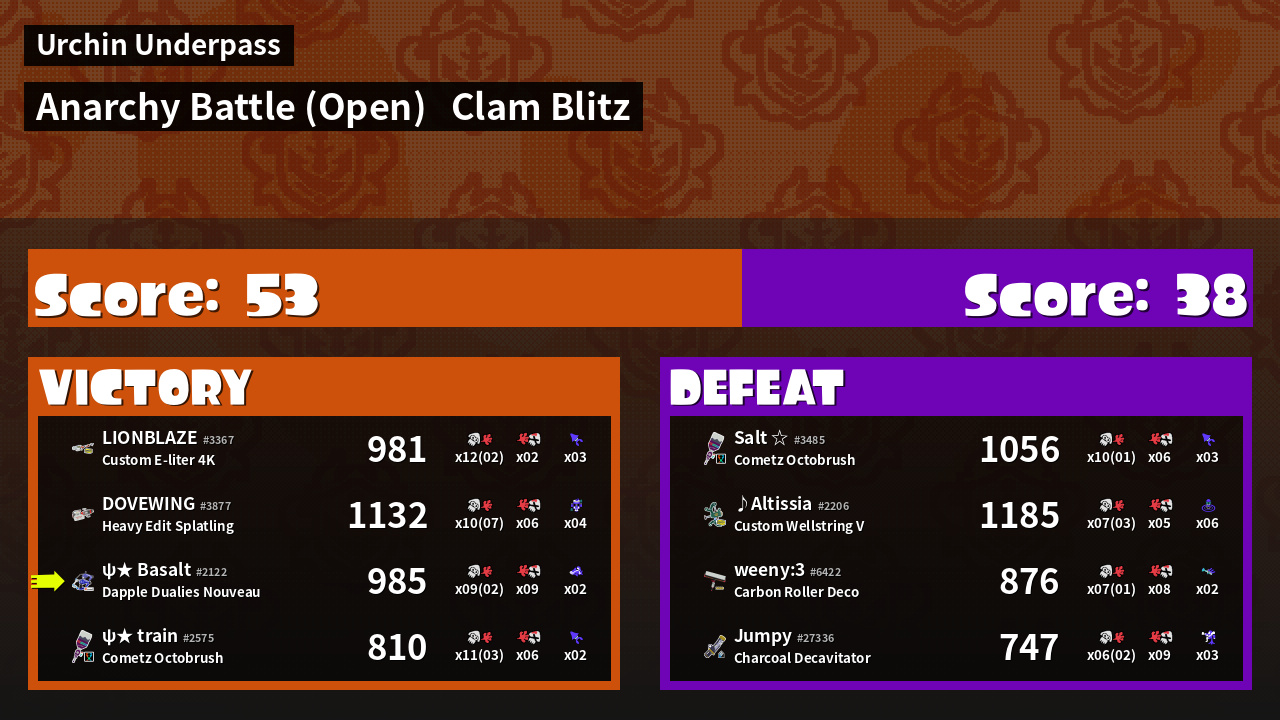 | Mode | Clam Blitz - Anarchy Battle (Open) | ||