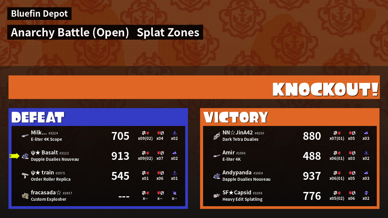 | Mode | Splat Zones - Anarchy Battle (Open) | ||