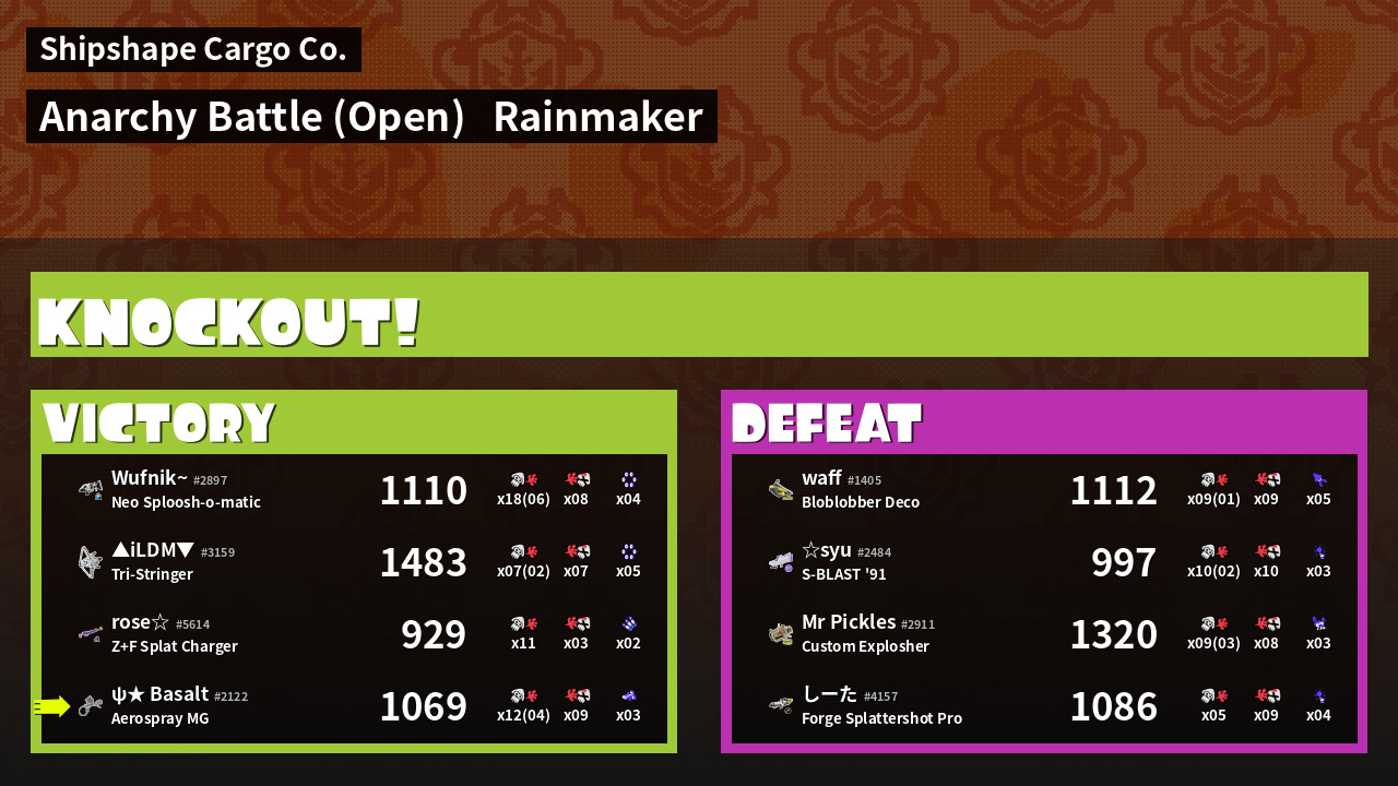 | Mode | Rainmaker - Anarchy Battle (Open) | ||